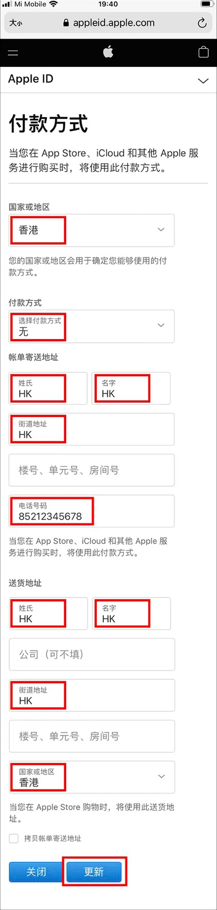 账单寄送地址:<姓氏、名字、街道地址随意填写>